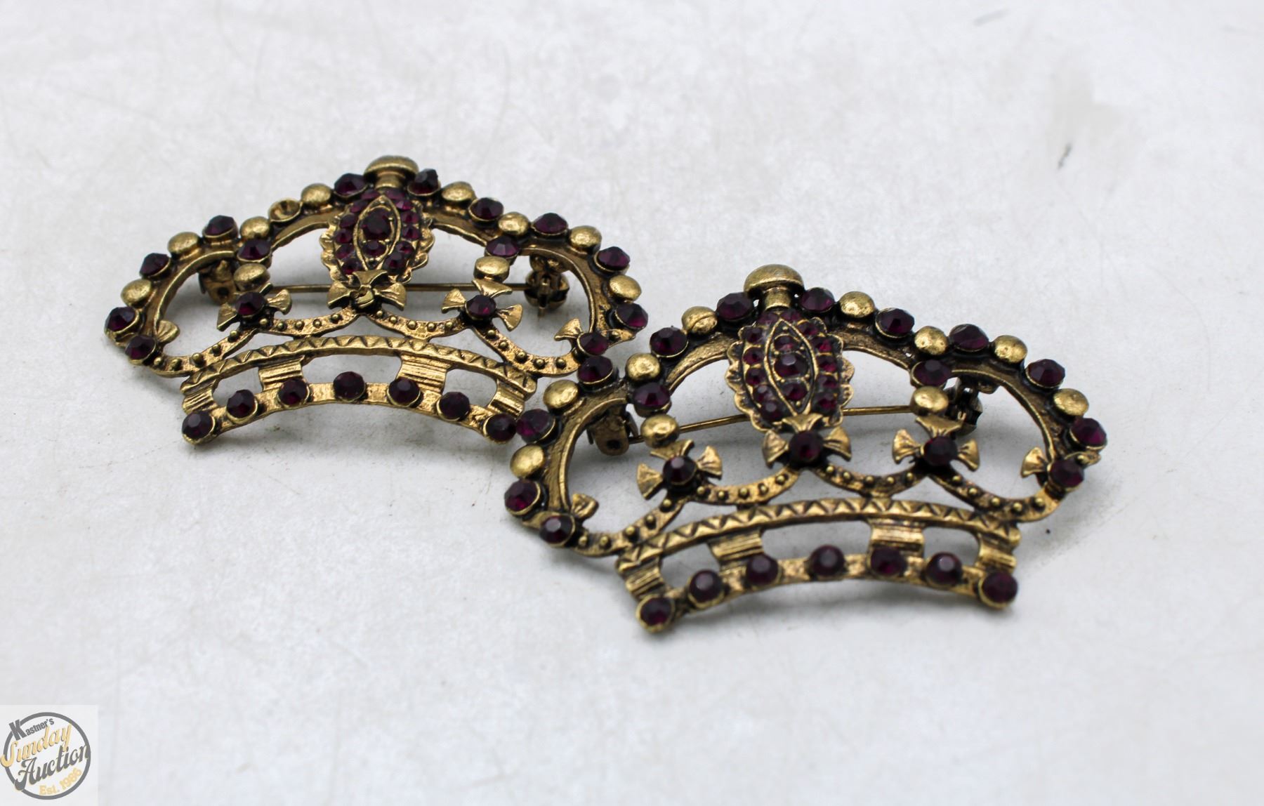 PAIR OF VINTAGE CROWN SHAPED BROOCHES