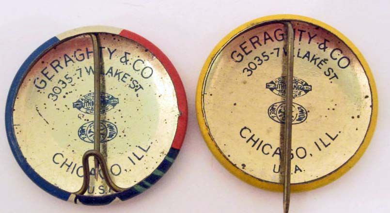 PAIR OF VINTAGE GERAGHTY & CO CELLULOID ADVERTISING PINS