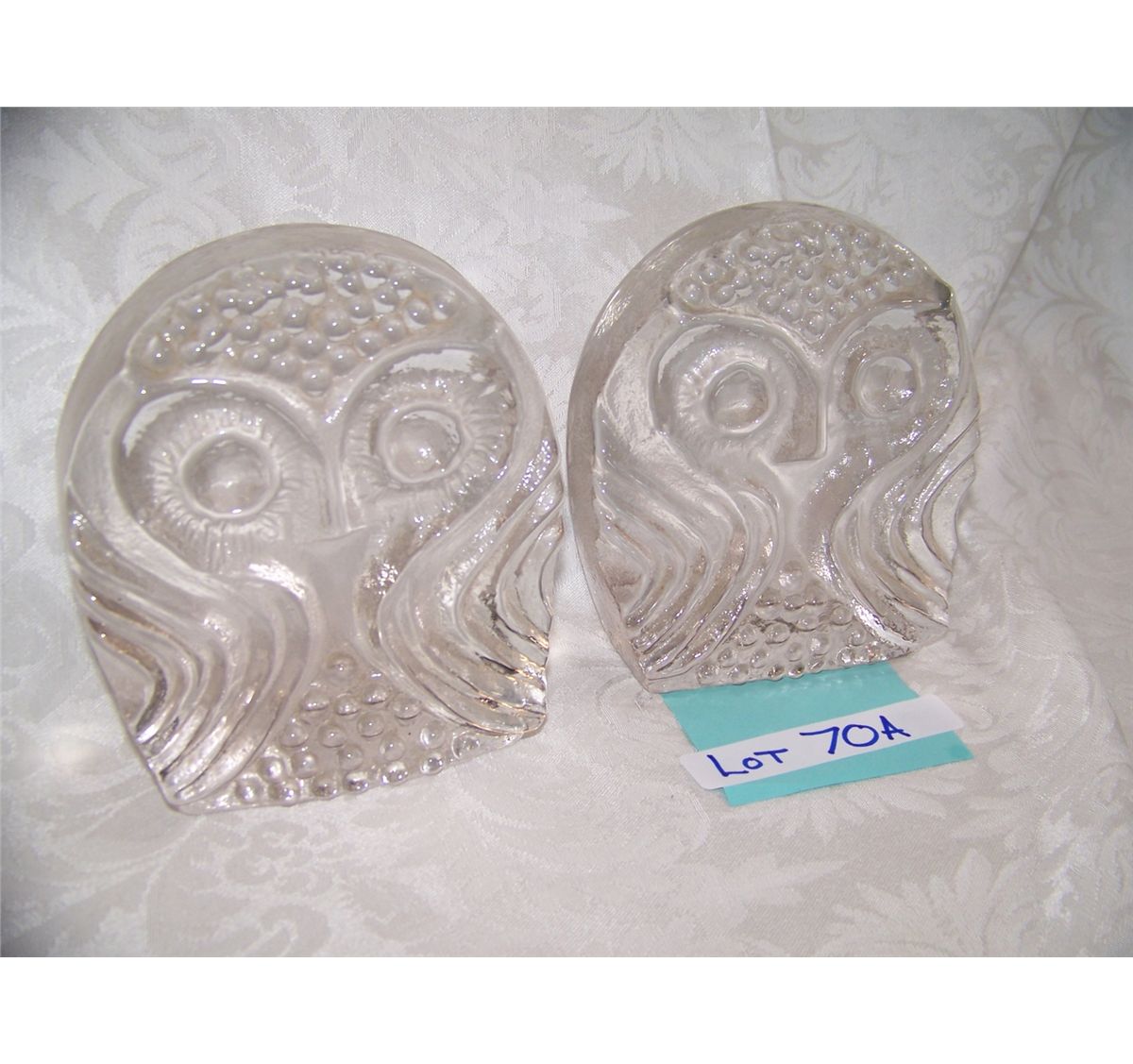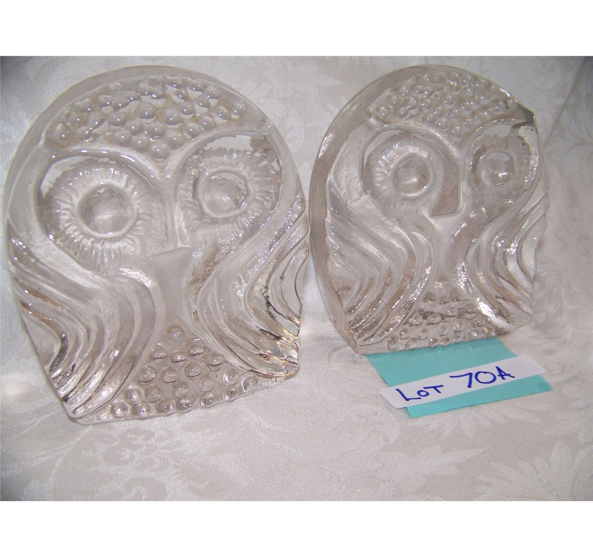 PAIR OF VINTAGE GLASS OWL BOOK ENDS