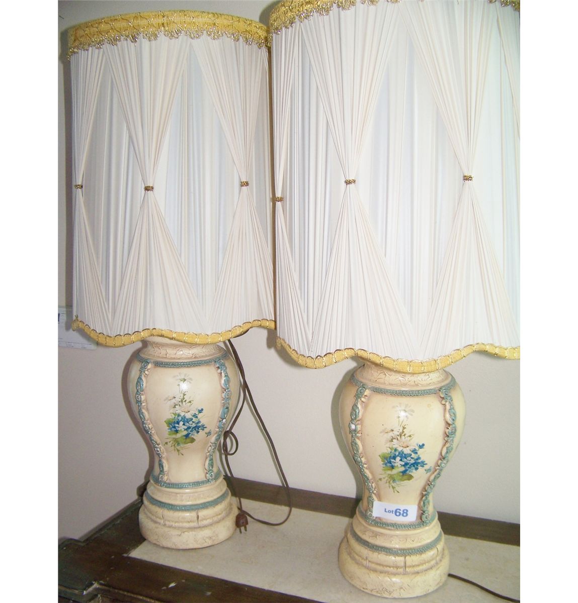 PAIR OF VINTAGE HAND PAINTED LAMPS.