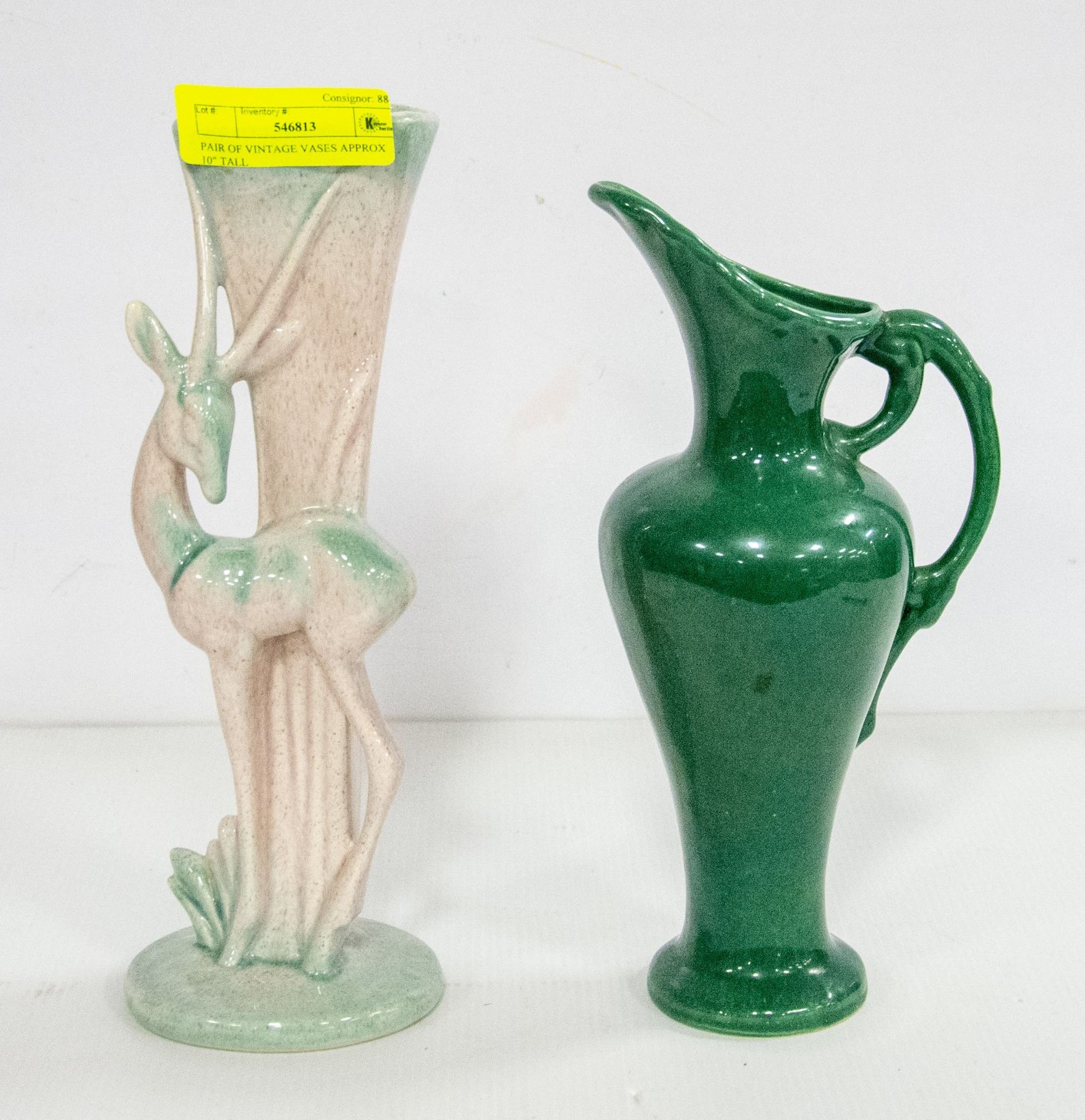 PAIR OF VINTAGE VASES APPROX 10" TALL