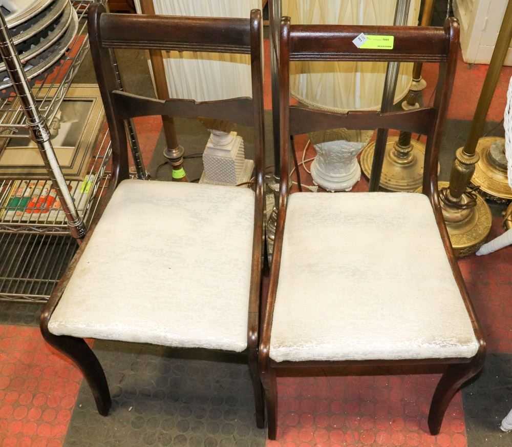 PAIR OF VINTAGE WOOD AND FABRIC CHAIRS