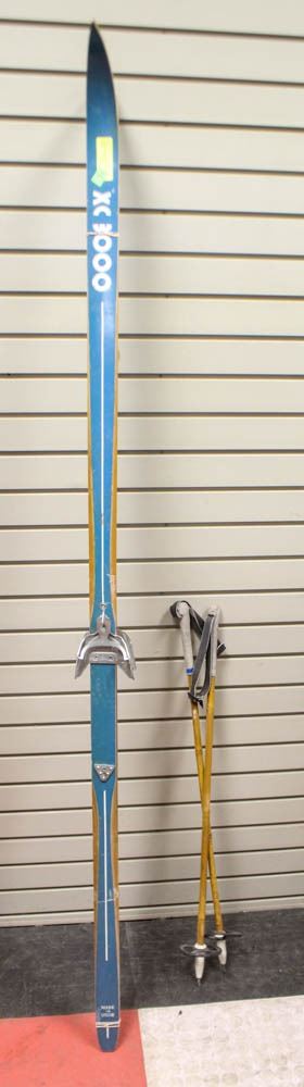 PAIR OF VINTAGE WOODEN SKIS WITH POLES
