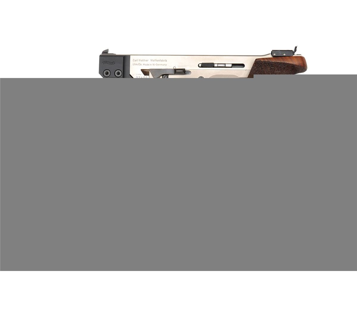 PLEASE NOTE (10-10-13): 1. One pistol is in cal.22 “long range”, the other is .22 cal short. 2. Conversion unit is cal. 32 Smith & Wesson Wadcutter, caliber not .32 ACP. SN 98596, 22400 & 117996. Cal. 22LR & 32 ACP. Nearly identical pistols that have satin hard chrome finish and contoured, stippled right hand adjustable target grips. Both have micrometer adjustable rear sights. Pistol SN 98596 has a 4-1/2" bbl in a flat side frame. Pistol SN 22400 is nearly identical with 3-1/4" bbl and a heavy flat side target frame with front bbl weight. Accompanied by an orig Walther conversion unit, SN 117996 that has 4" bbl in a flat side light weight frame with micrometer adjustable rear sight. Each pistol is accompanied by its orig black hard plastic case, orig paperwork and target, including target for conversion unit, owners manuals and tools. Conversion unit also has 2 orig Walther magazines, each pistol has an orig caliber 22 magazine and there are 2 spare 22 cal magazines. Pistols also come with orig correspondence from German dealer, Carl Bock of Frankfurt Germany to Mr. Ronald J. Holmes of Chappaqua, NY, along with invoices for both pistols and the conversion unit. CONDITION: Both pistols and conversion unit are in exceptionally fine, as new condition, retaining virtually all of their crisp, orig finish. Spare magazines and cases are equally new. 4-49184 JR250