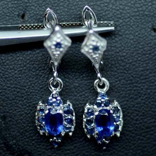 PAIR OF WHITE GOLD OVER STERLING SILVER KYANITE EARRINGS