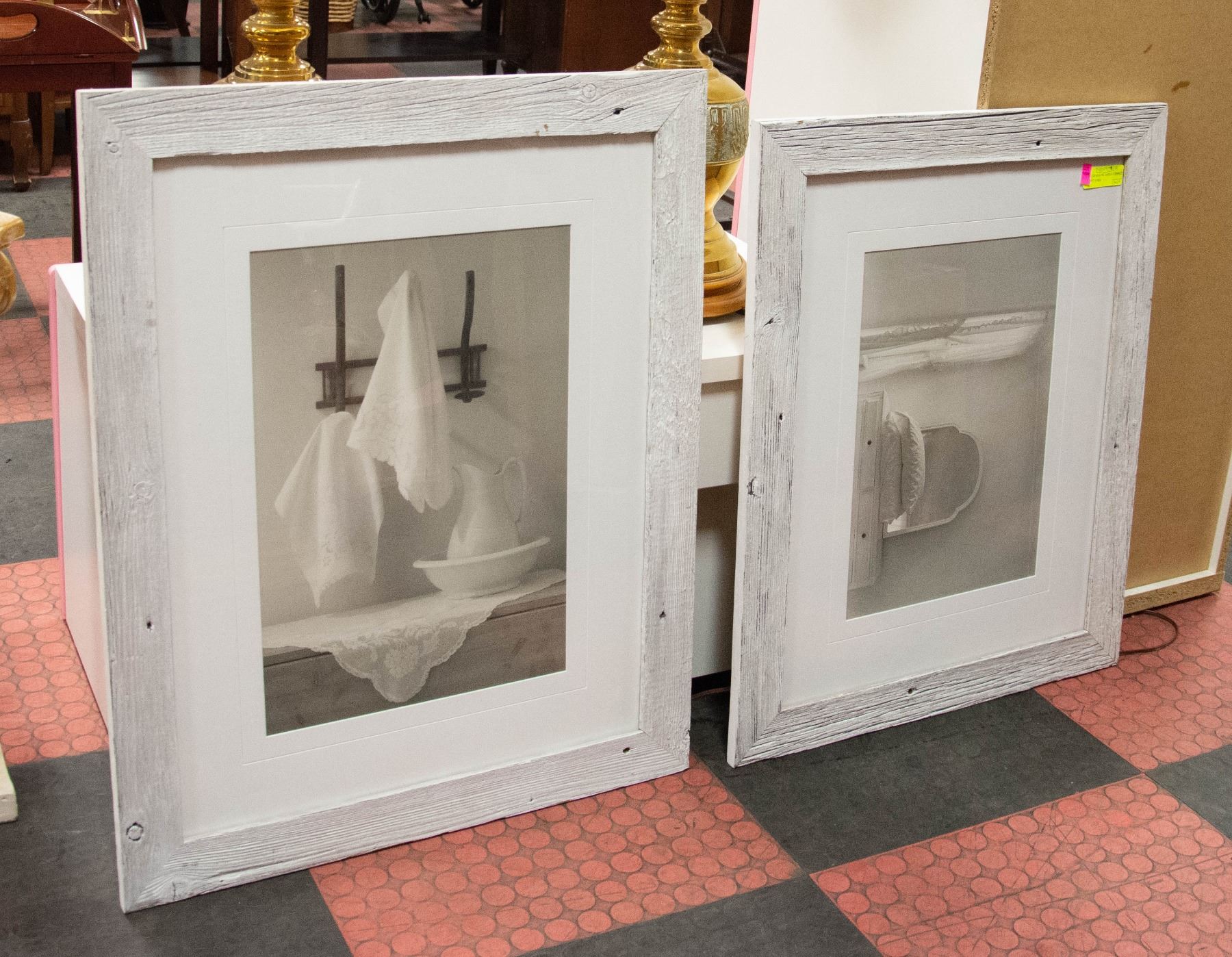 PAIR OF WHITE WOOD FRAMES WITH MATTING