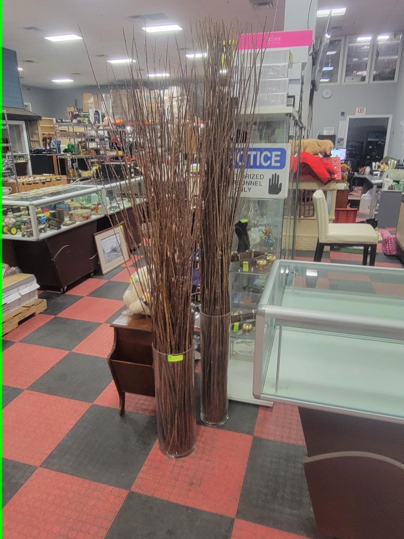PAIR OF WICKER DECOR FILLED PLASTIC VASES