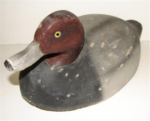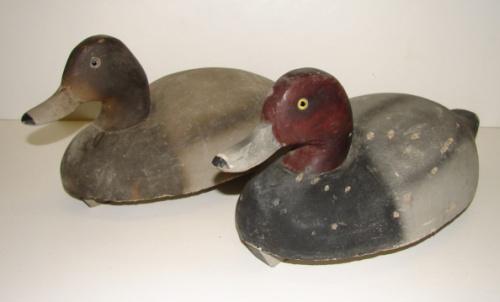PAIR OF WILDFOWLER OLD SAYBROOK, CONNECTICUT RED HEAD DECOYS. Flat bottom. Drake shows shot marks. 13.5” L