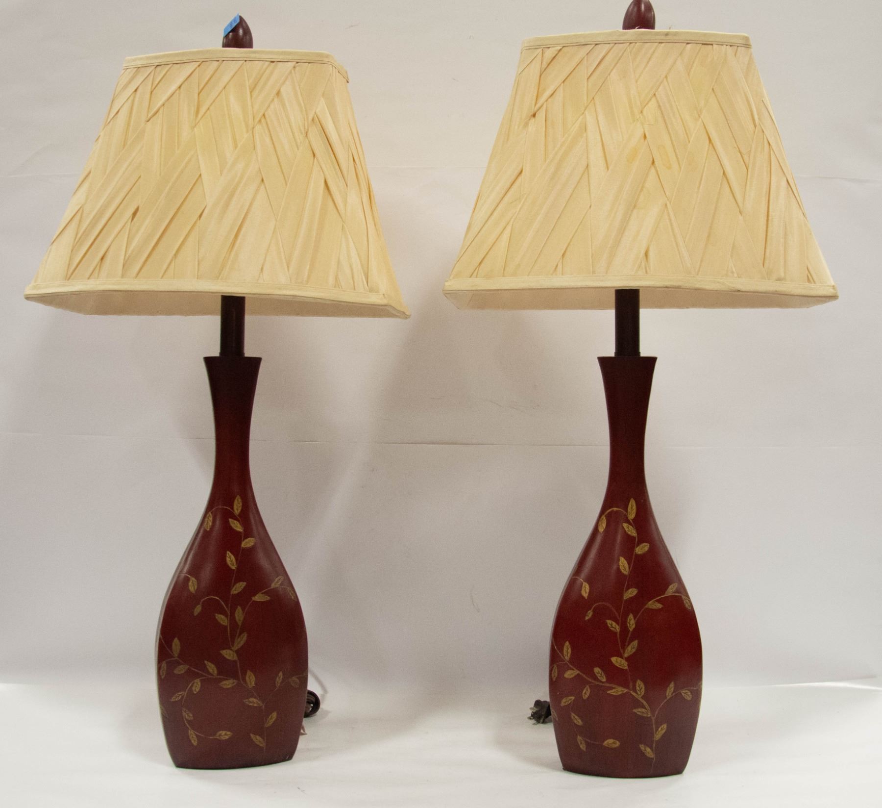 PAIR OF WOOD LAMPS WITH FERN DESIGN