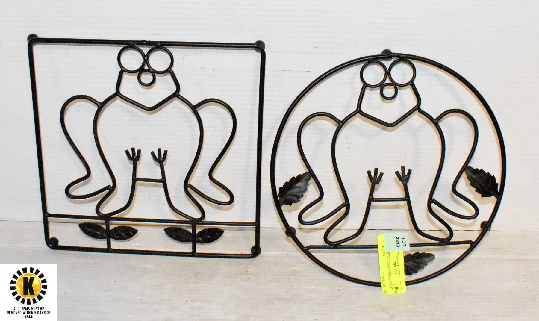 PAIR OF WROUGHT IRON FROG TRIVETS