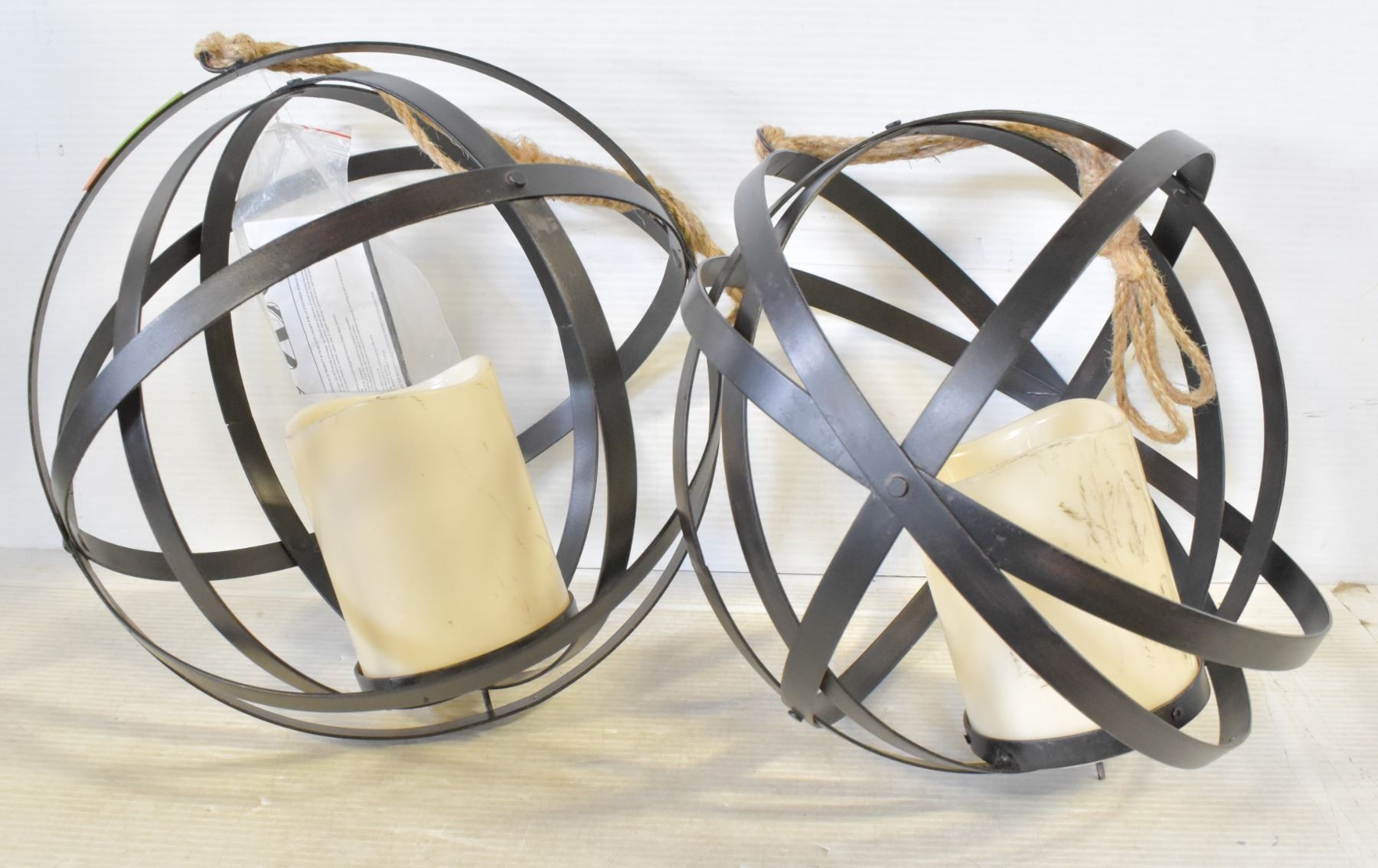 PAIR OF WROUGHT IRON HANGING LANTERNS