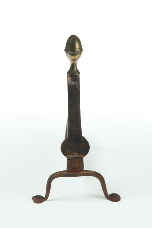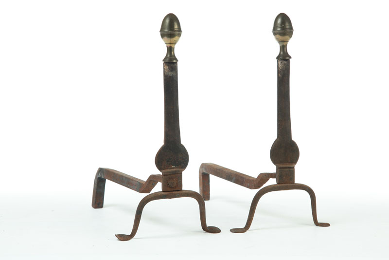 American, late 18th century. Penny feet and seamed brass lemon top finials. 15 1/2"h.