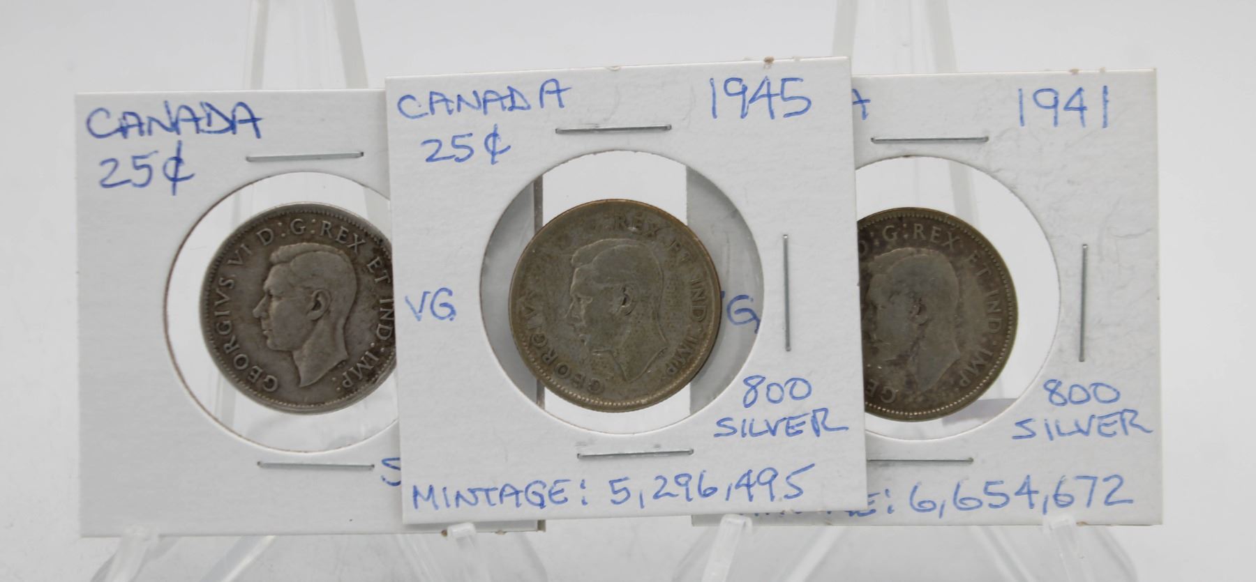 PAIR OF WW2 CANADA 25 CENTS SILVER COINS