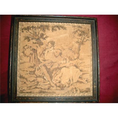 PAIR OF 7X7 17th-18th HAND MADE TAPESTRY FRAMED OF LOVERS