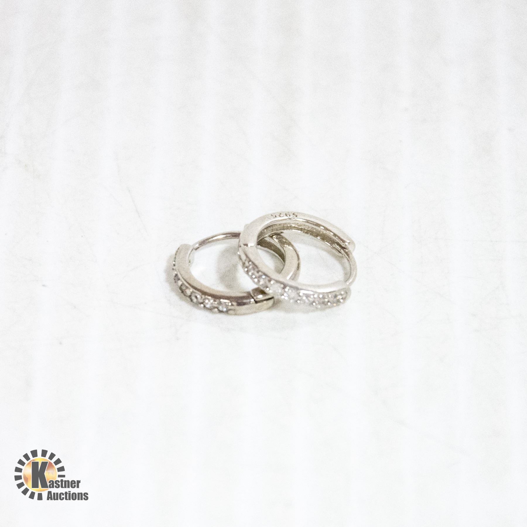 PAIR STAMPED 925 10MM EARRINGS W/CLEAR STONES