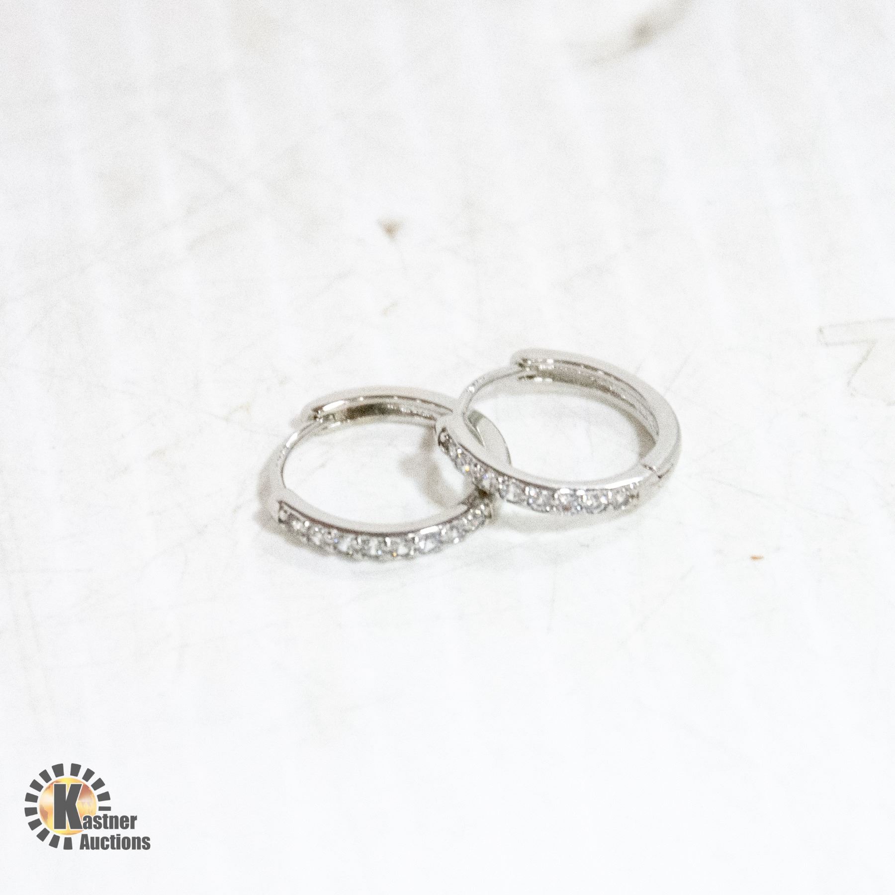 PAIR STAMPED 925 12MM EARRINGS W/CLEAR STONES