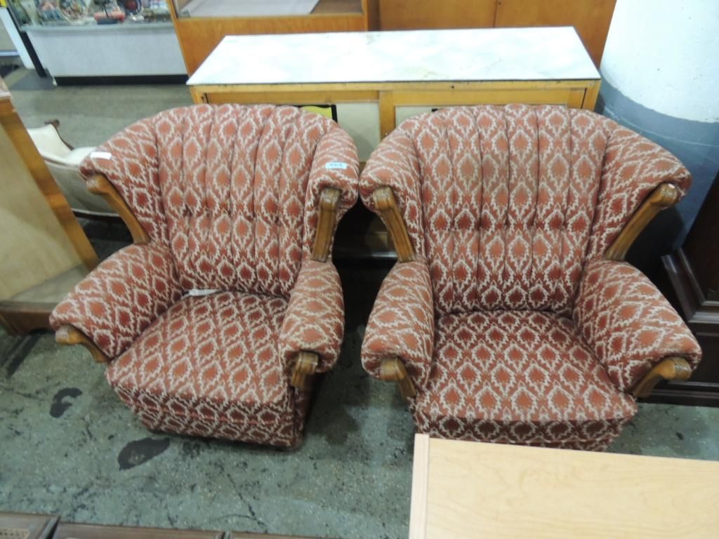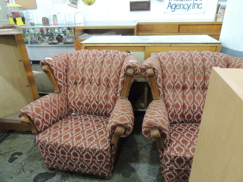UPHOLSTERED TUFFED CHAIRS DAMESK STYLE DESIGN AS SHOWN SEE PHOTO FOR MORE DETAILS.