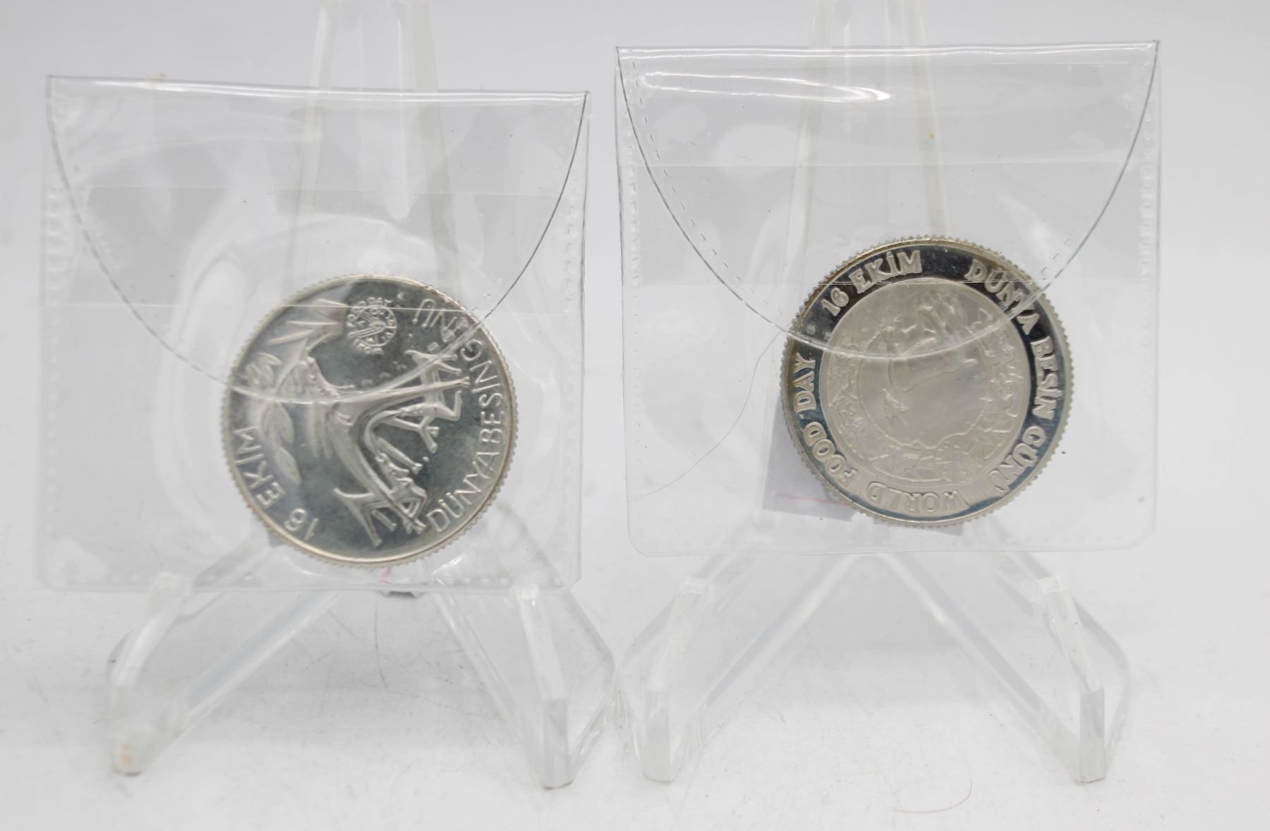 PAIR TURKEY 1500 LIRA SILVER COINS. UNC. SCARCE.