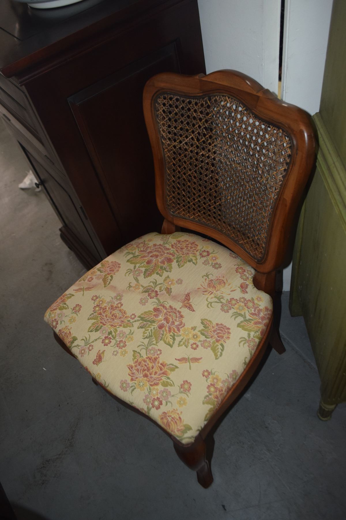 PAIR UPHOLSTERED SIDE CHAIRS W/CANE BACKS