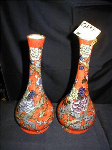 PAIR VASES, ENGLISH COREA, HAND PAINTED, CORONAWARE (1) W/STRESSCRACK