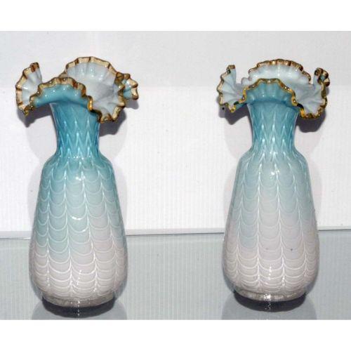 PAIR VICTORIAN RUFFLED CASE GLASS VASES, CONDITION REPORT: excellent, PACKING AND SHIPPING: Fairfield Auction will provide packing and shipping (excluding insurance) within the Continental U.S. for $30. Buyer is welcome to use any other service or pick-up at the gallery.