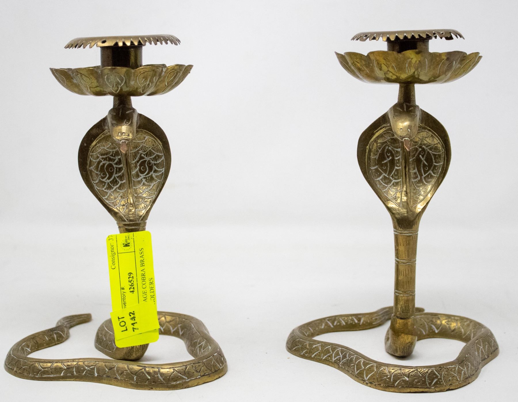 PAIR VINTAGE COBRA BRASS CANDLE HOLDERS