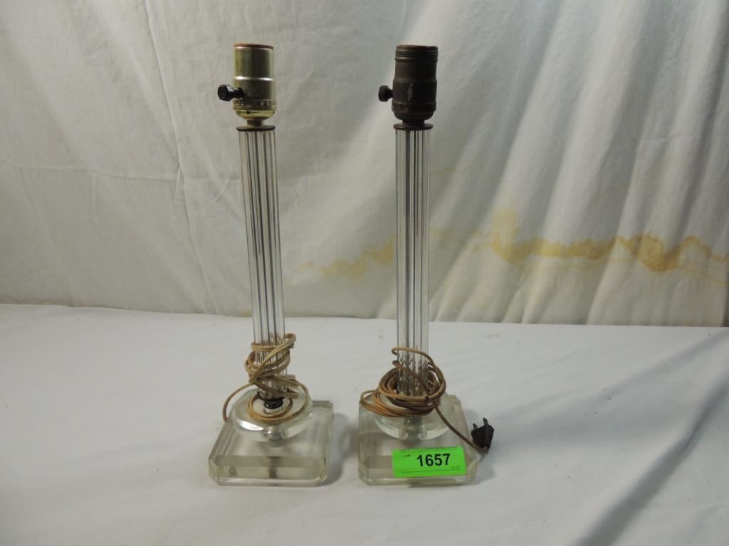VITNAGE GLASS PEDISTAL TABLE LAMP, SMALL LAMP, NIGHT STAND LAMP, VITNAGE DECORATIVE LAMP AS SHOWN SEE PHOTO FOR MORE DETAILS.