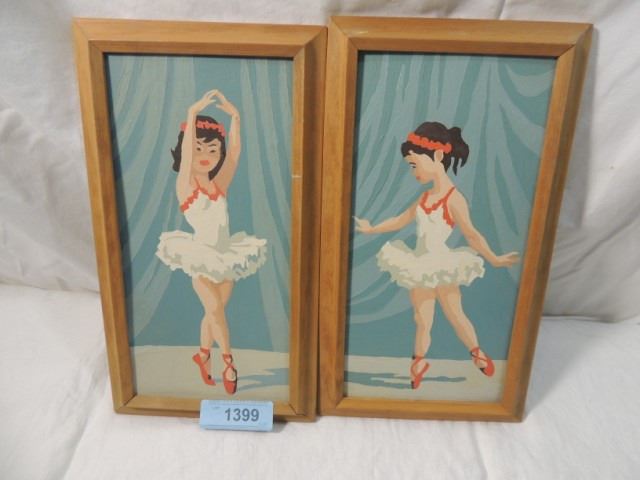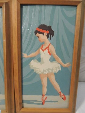 PAIR OF PAINT BY NUMBER VINTAGE FRAMED ARTWORK ART. BOTH ARE BALLERINAS. THEY ARE 7.5" X 13.5" AS SHOWN. BOTH FOR ONE MONEY.