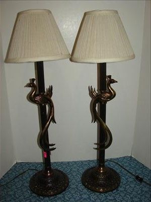 PAIR OF 28" TABLE LAMPS WITH PEACOCKS AND BRASS BASES. AS SHOWN. VIEW PICTURE FOR DETAIL.