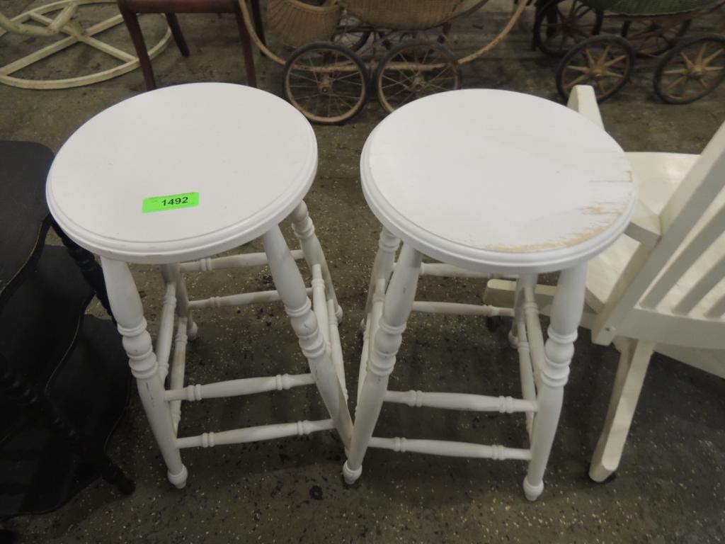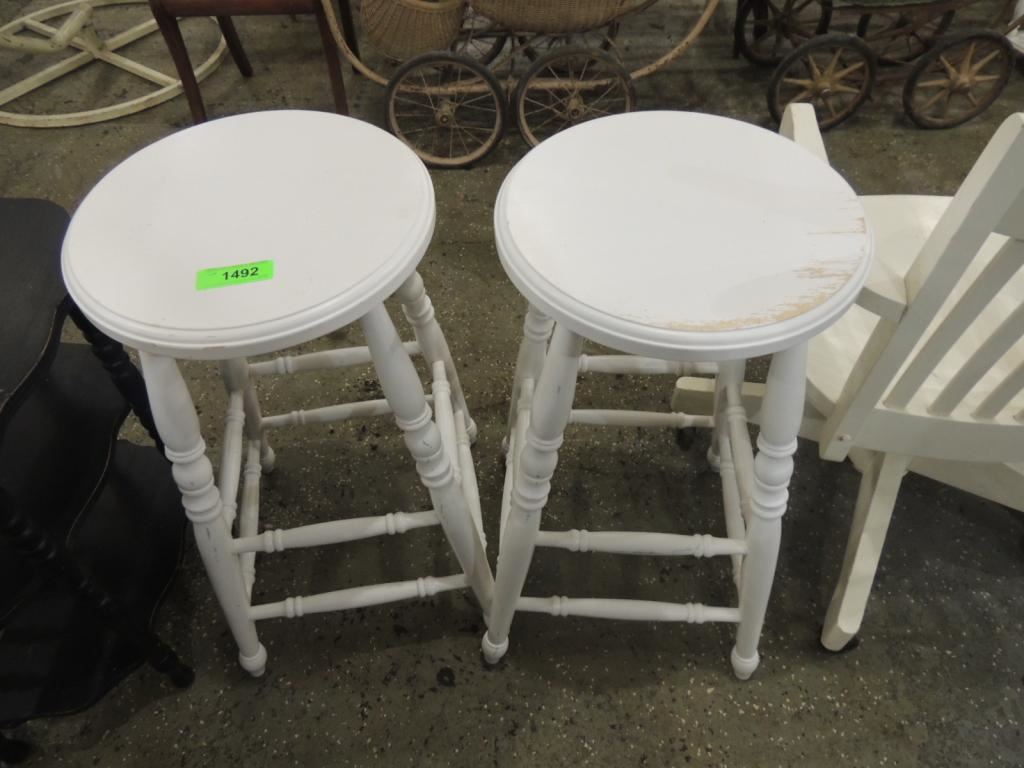 WHITE WOODEN STOOLS, BAR STOOLS, DECORATIVE STOOLS VINTAGE STYLE STOOLS AS SHOWN SEE PHOTO FOR MORE DETAILS.