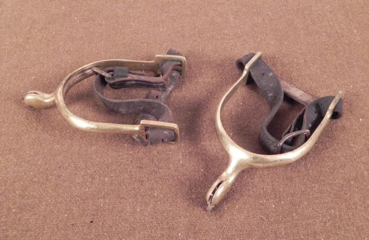 PAIR * WWI CAVALRY BRASS SPURS-MARKED 1903 R.I.A.-ROCK ISLAND ARMORY-WITH LEATHER * OFFICER'S * WWI AND PRE-WWI U.S. CAVALRY SPURS==VERY WELL MADE -COMPLETE WITH LEATHER * STRAPS AND ADJUSTMENT BUCKLES