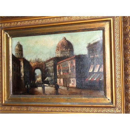 A beautiful PAIR of matching antique small View of Florence and Venice , small size and great quality, they measure without the frame 11 inches wide and 13 inches tall , and with the quality gold gilt , heavily carved frame, 19 inches wide and 13 inches H. Oil on canvas , without any repair or restoration , they were painted with exquisite detail . Shipping within US $ 75