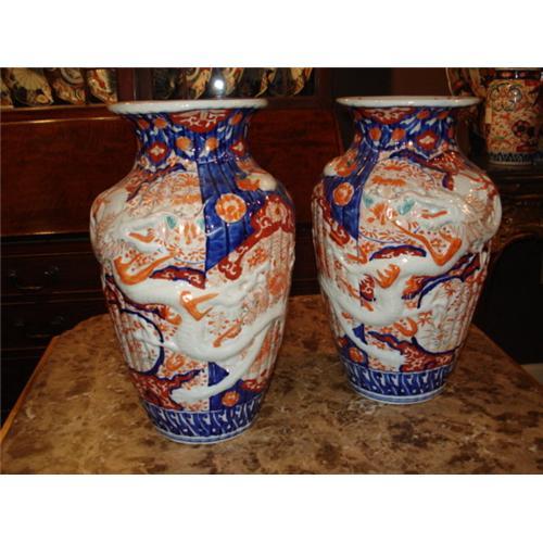 <tr><td>Title:PAIR of Embossed Imari Vases</td></tr>