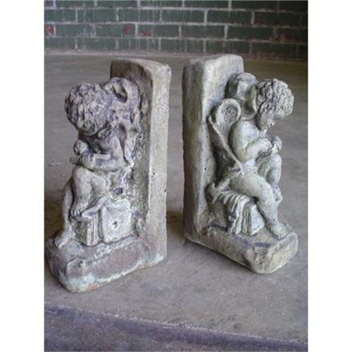 Every inch of this stone PAIR of OLD WORLD ARCHITECTURAL CHERUB BOOKENDS STATUE STATUARY radiates charm and antiquity.
