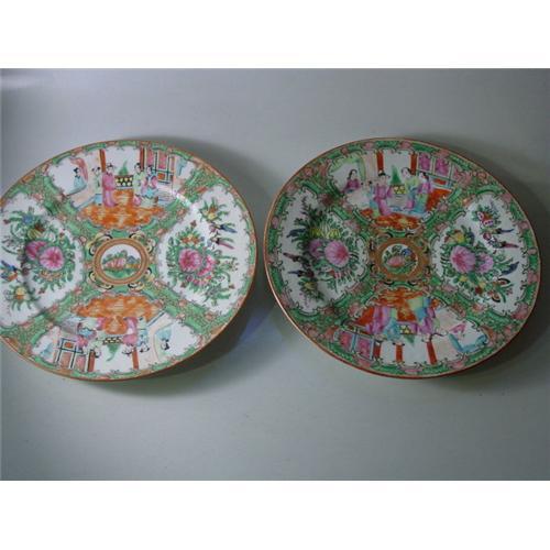 THESE ROSE MEDALLION PLATES ARE NOT REPROS, THEY ARE FROM THE EARLY PART OF THE 20TH CENTURY, THEY HAVE VIBRANT CLEAR COLORS AND BOTH ARE PERFECT.