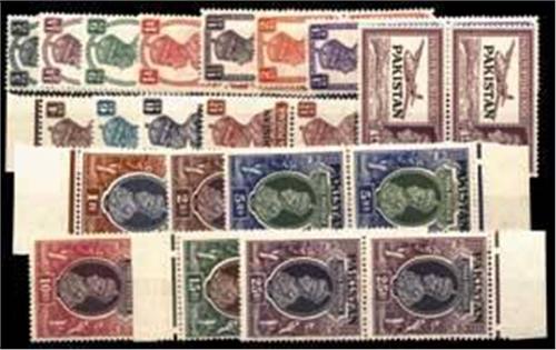 1947 'PAKISTAN' ovpt 3p to 25r (SG 1-19) in vertical pairs, fine u/m, 1r to 25r in marginal pairs