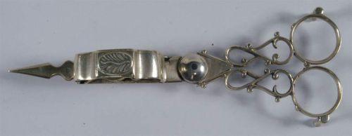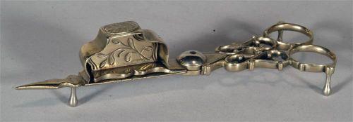 PAKTONG CANDLE SNUFFER 7" long 18th century, CONDITION: excellent, no damage or repairs. PACKING AND SHIPPING BY FAIRFIELD AUCTION WITHIN CONTINENTAL USA (excluding insurance) $20,