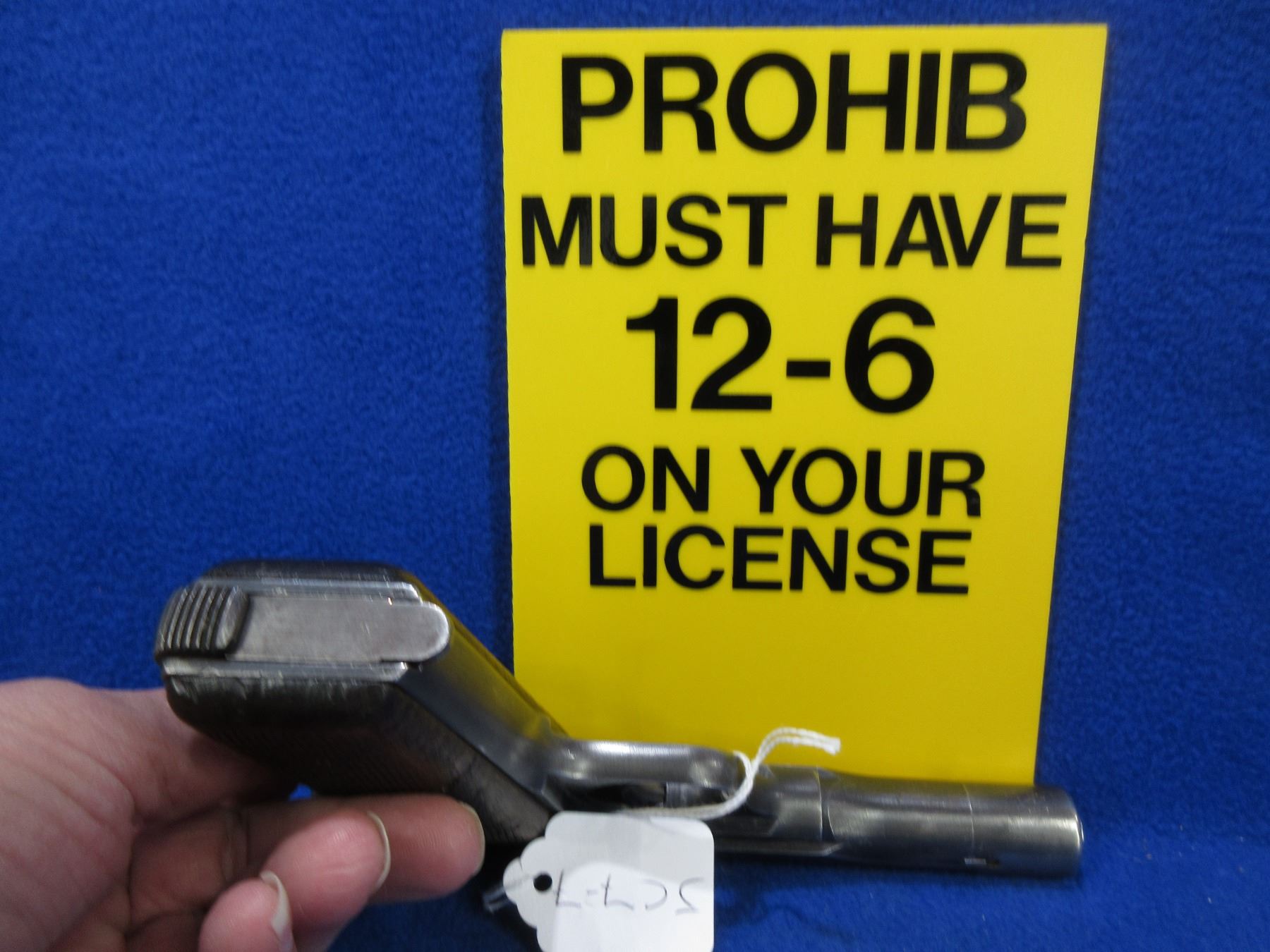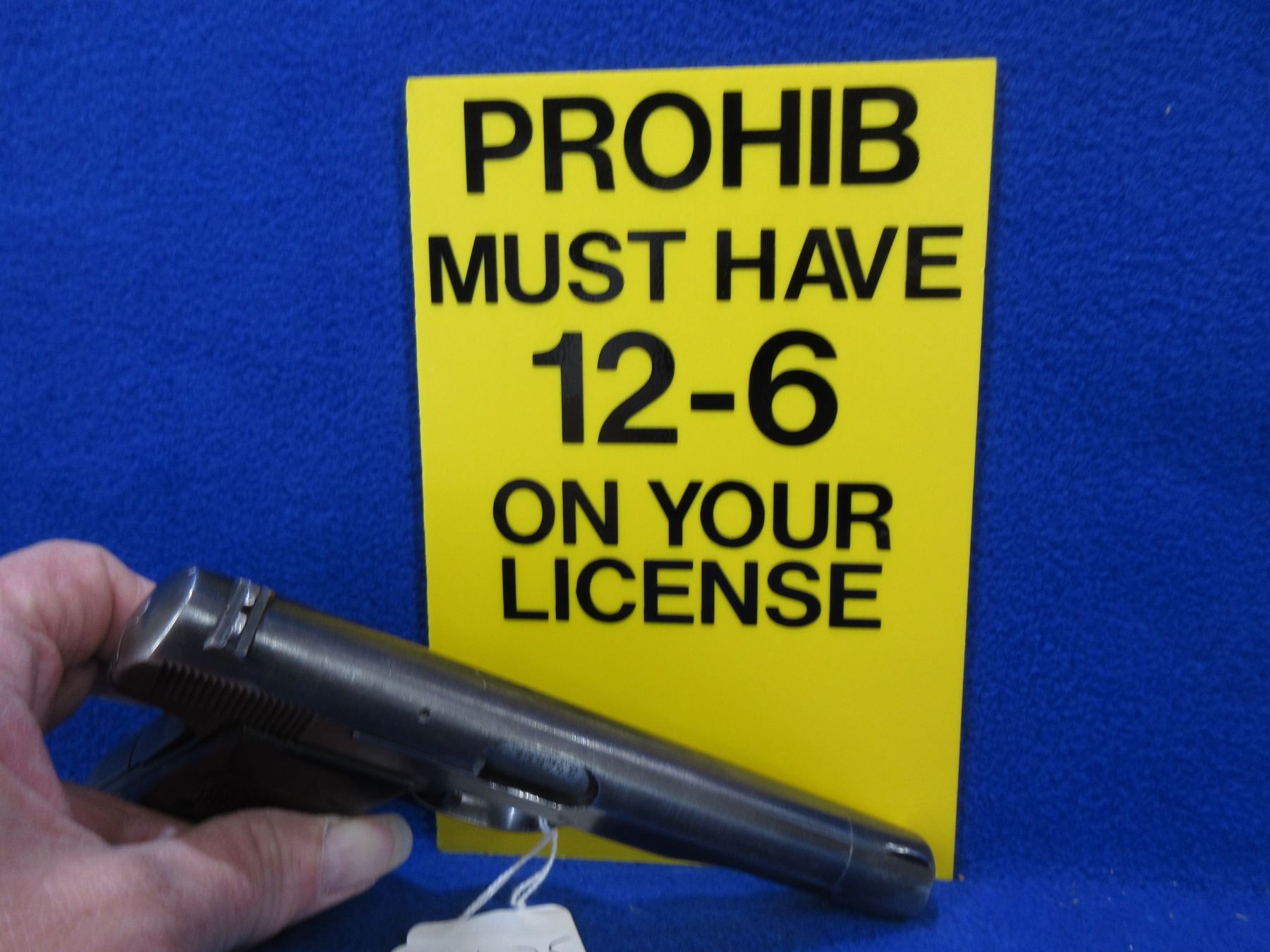 PAL must have 12-6 Handgun on it to Purchase this Prohib Firearm CHECK BEFORE BIDDING - FN Browning Model 1922 in 7.65MM (32 ACP) - This semi-auto pistol with magazine appears to be in good working order. Barrel is 114MM, rifling is good to very good, bluing is grey or gone, has fixed front sight, adjustable rear sight, grips are fair. Ser # 138742