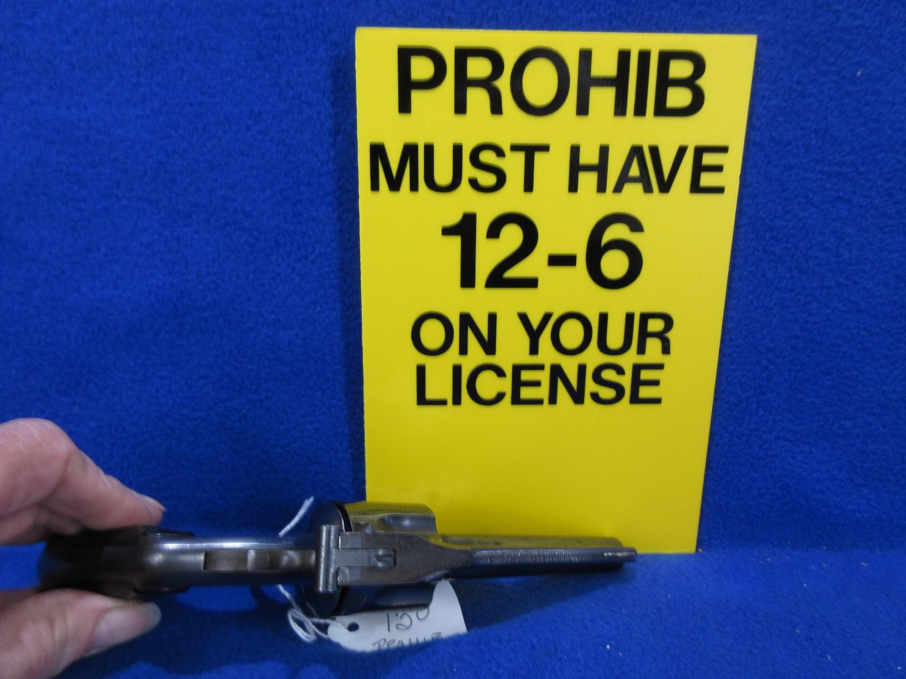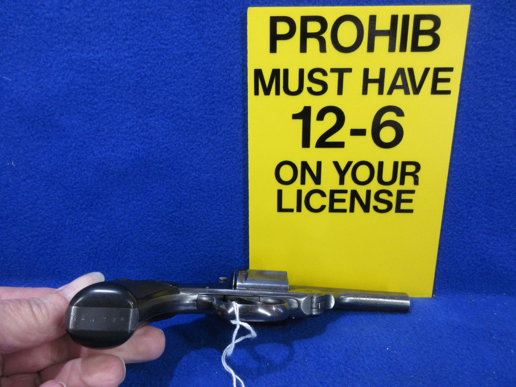 PAL must have 12-6 Handgun on it to Purchase this Prohib Firearm CHECK BEFORE BIDDING - Harrington & Richardson in 38 S&W - This double action top load 5 shot revolver appears to be in good to very good working order. Barrel is 83MM, rifling is good to very good, bluing is good, fixed sights, synthetic grips are good to very good. Ser # 432653
