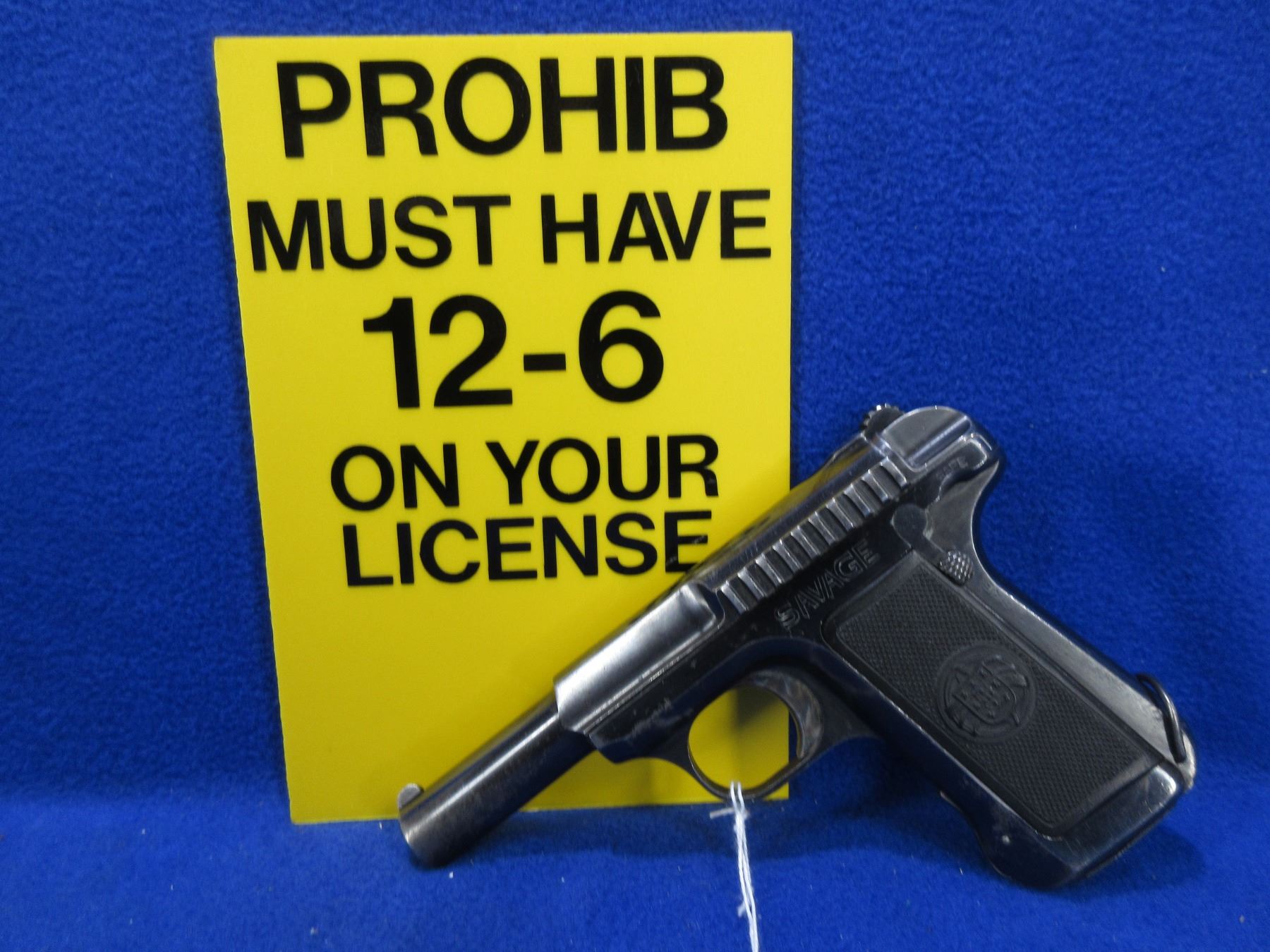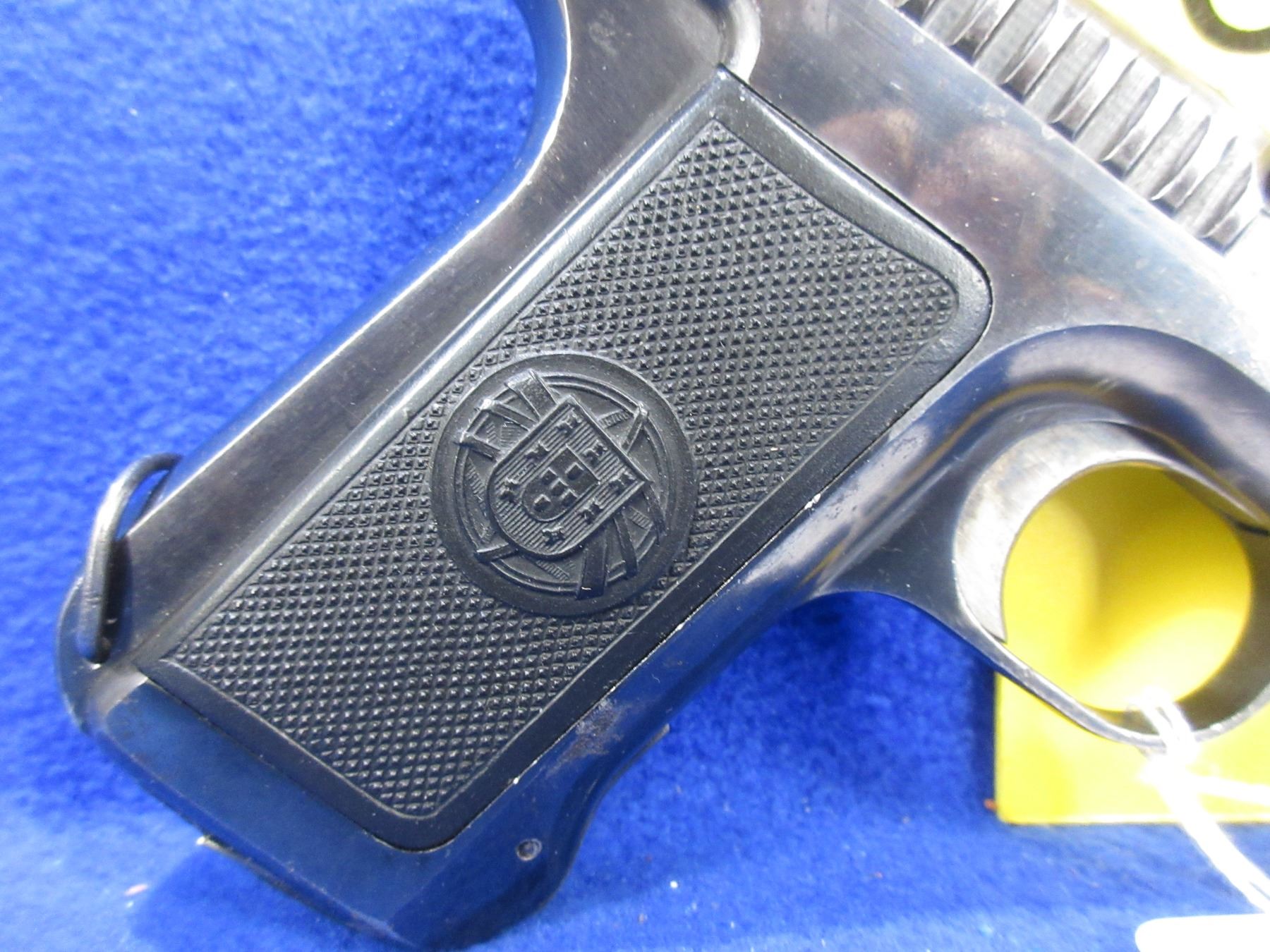 PAL must have 12-6 Handgun on it to Purchase this Prohib Firearm CHECK BEFORE BIDDING - Savage Model 1907 in 32 ACP - This semi-auto pistol with magazine appears to be in good to very good working order. Barrel is 95MM, rifling is good to very good, bluing is good with wear, has fixed sights, synthetic grips are good to very good, Portugese military model, original grips were replaced with portugese coat of arms imbedded grips, page 94 of 10 quick shots book by Daniel Stern lists a picture of his Portugese Savage pistol #165282 which is this exact pistol, only known Portugese pistol in Canada. Ser # 165282