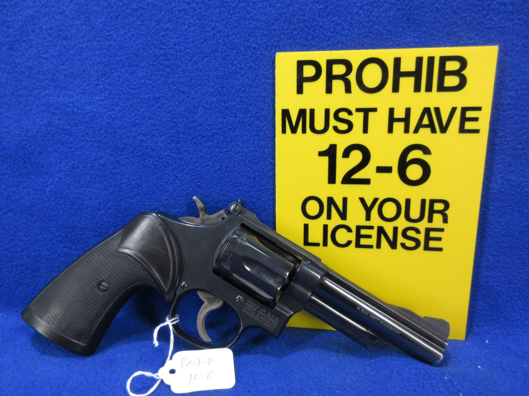 PAL must have 12-6 Handgun on it to Purchase this Prohib Firearm CHECK BEFORE BIDDING - Smith & Wesson Model 19-4 in 357 Magnum - This double action 6 shot revolver appears to be in very good working order. Barrel is 102MM, rifling is very good, bluing is very good, has fixed front sight, adjustable rear sight, Pachmayr rubber grips are very good. Ser # 70K8324