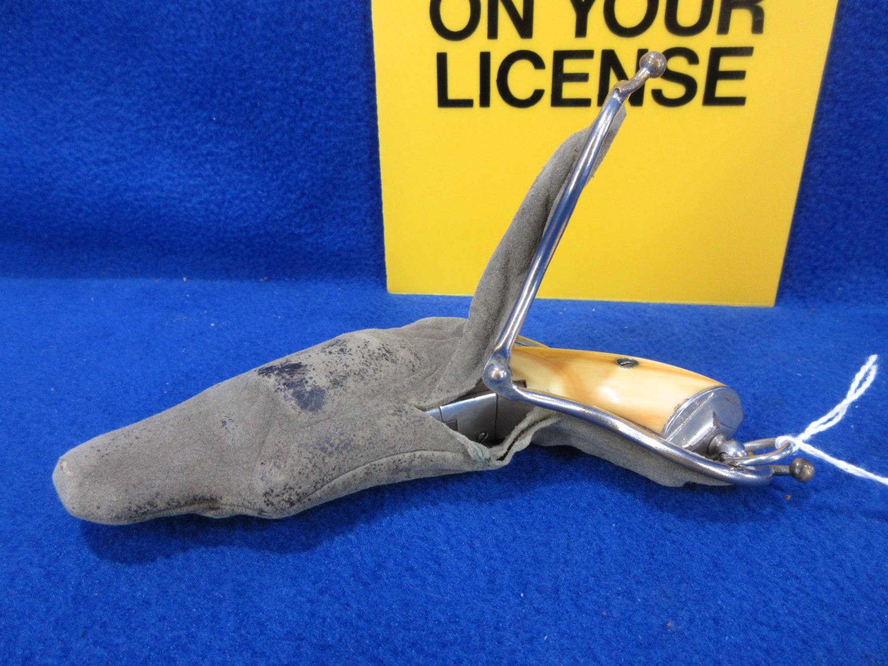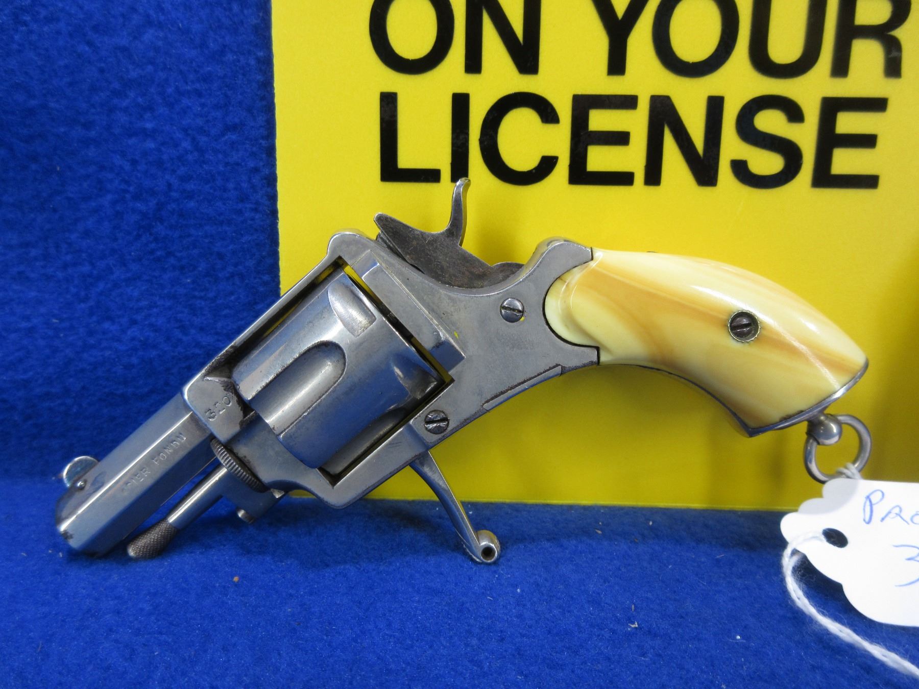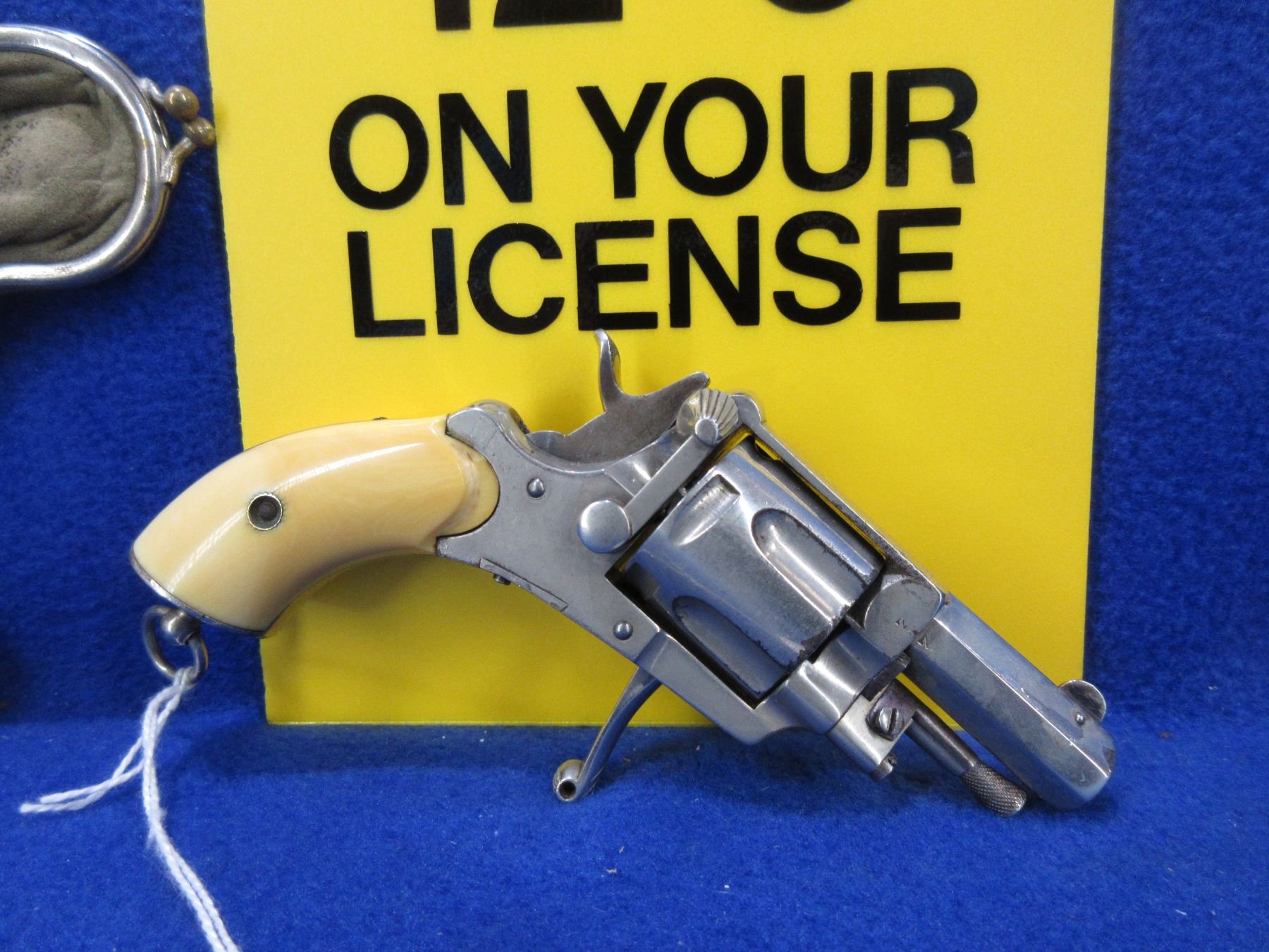PAL must have 12-6 Handgun on it to Purchase this Prohib Firearm CHECK BEFORE BIDDING - Unknown B. Coirier a Paris Dated 1875 Model Velo Dog? in 32 Cal. - This 5 shot single action revolver appears to be in good to very good working order. Barrel is 25MM, rifling is good to very good, nickel finish is good to very good for age, has fixed sights, Ivory grips are very good, comes with leather case. Ser # 320