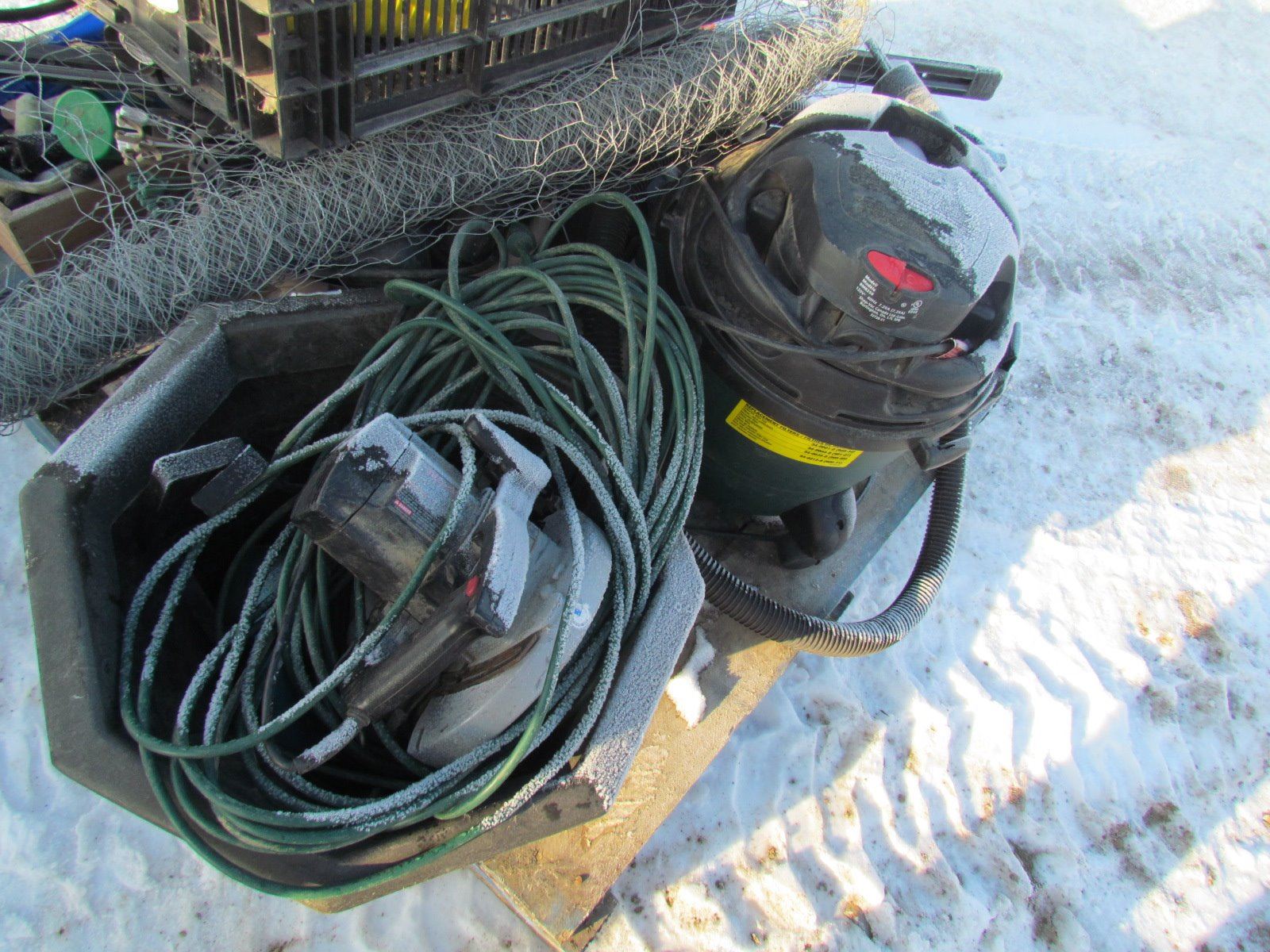 PALLET ASSORTED TOOL, SKILL SAW, SHOP VAC, EXT. CORD