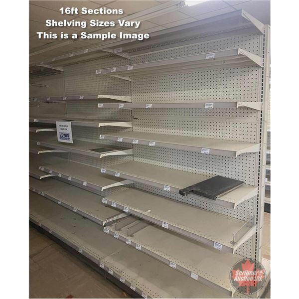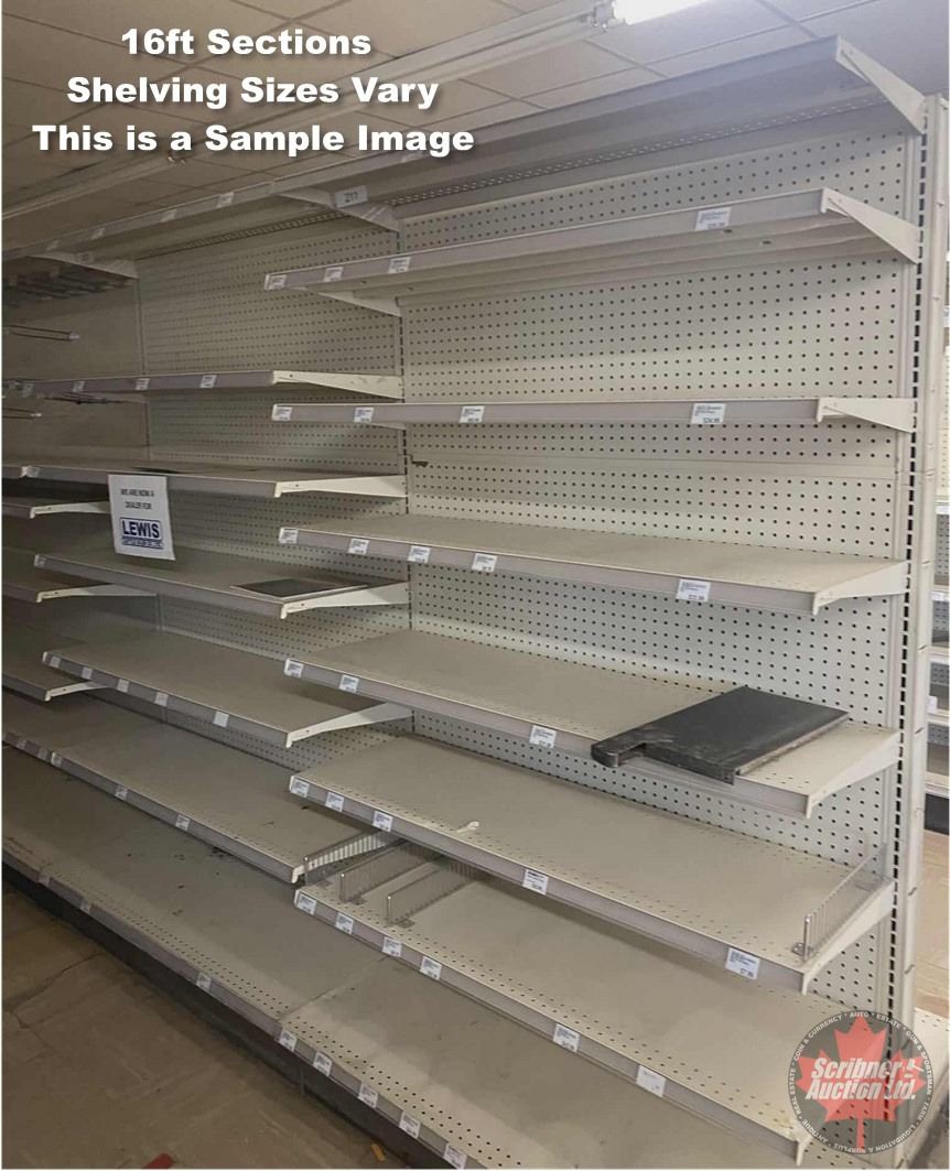PALLET LOT : Metal Store Shelving : 16ft Sections (Various Shelf Lengths) (from Wainwright Co-Op Lumber)