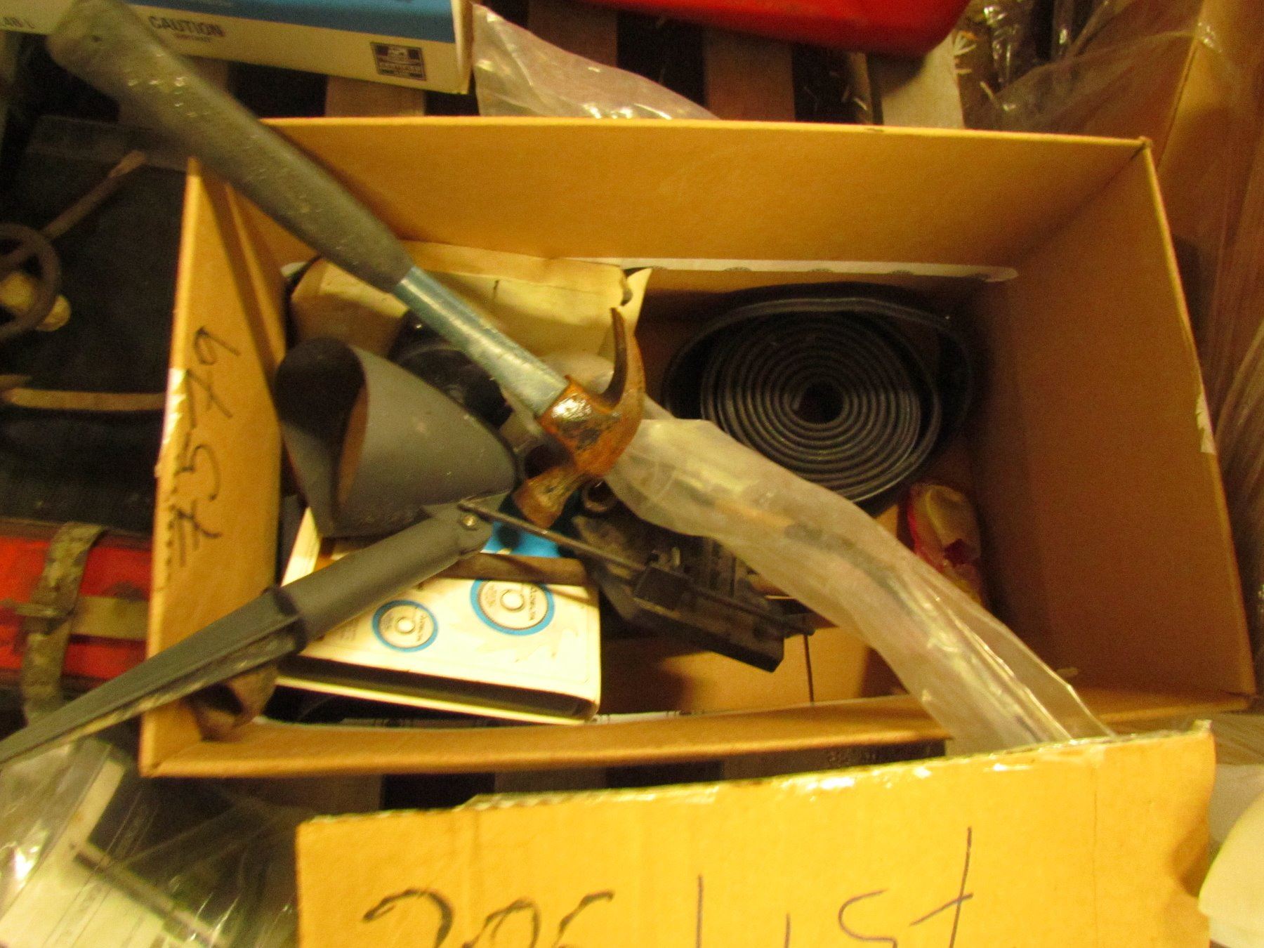 PALLET MISC TOOLS, MEAT HOOKS, GAS CAN, TREE TRIMMER, HAMMERS, ETC