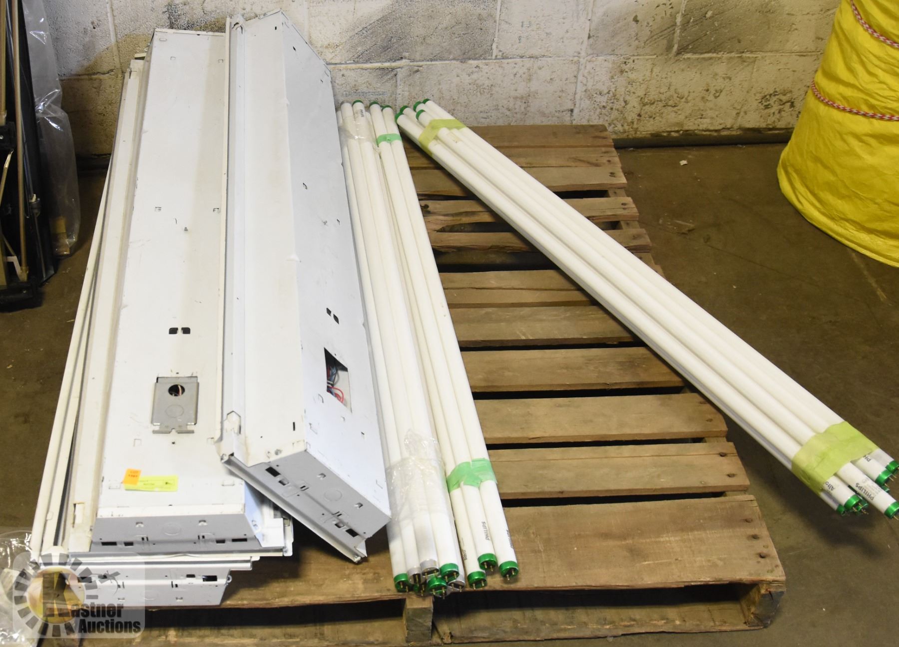 PALLET OF 4 FLUORESCENT FIXTURES, TUBES, BLIND &