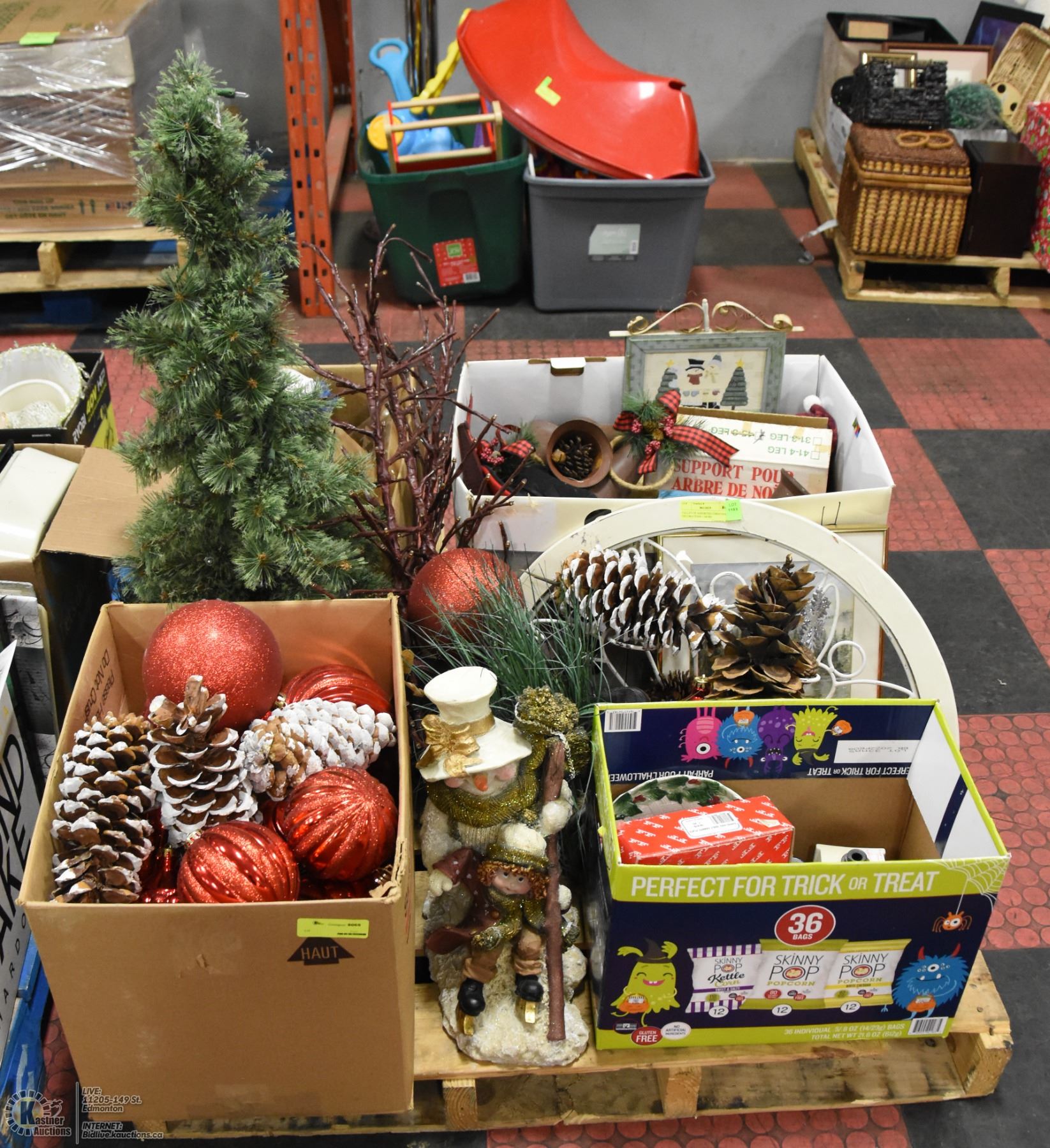 PALLET OF ASSORTED CHRISTMAS DECORATIONS + MORE