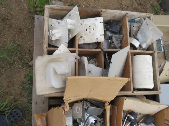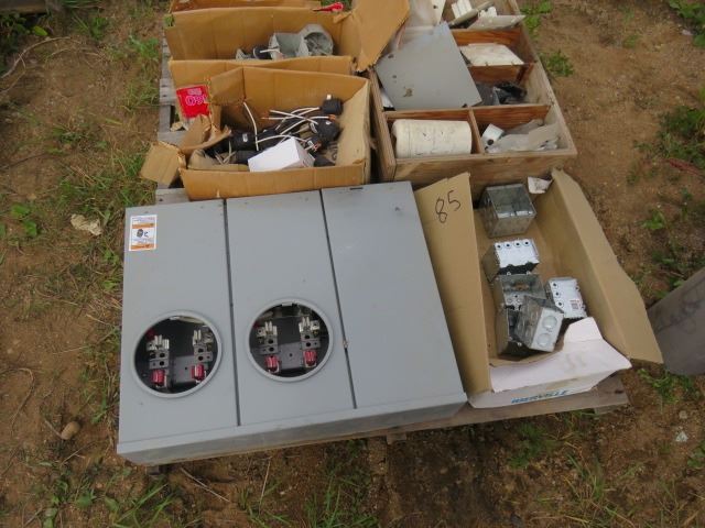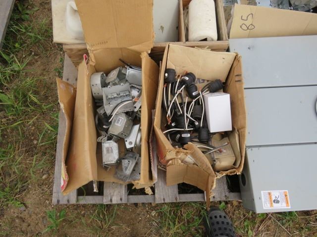 PALLET OF ELECTRICAL BOXES, PIG TAILS, BREAKERS ETC.
