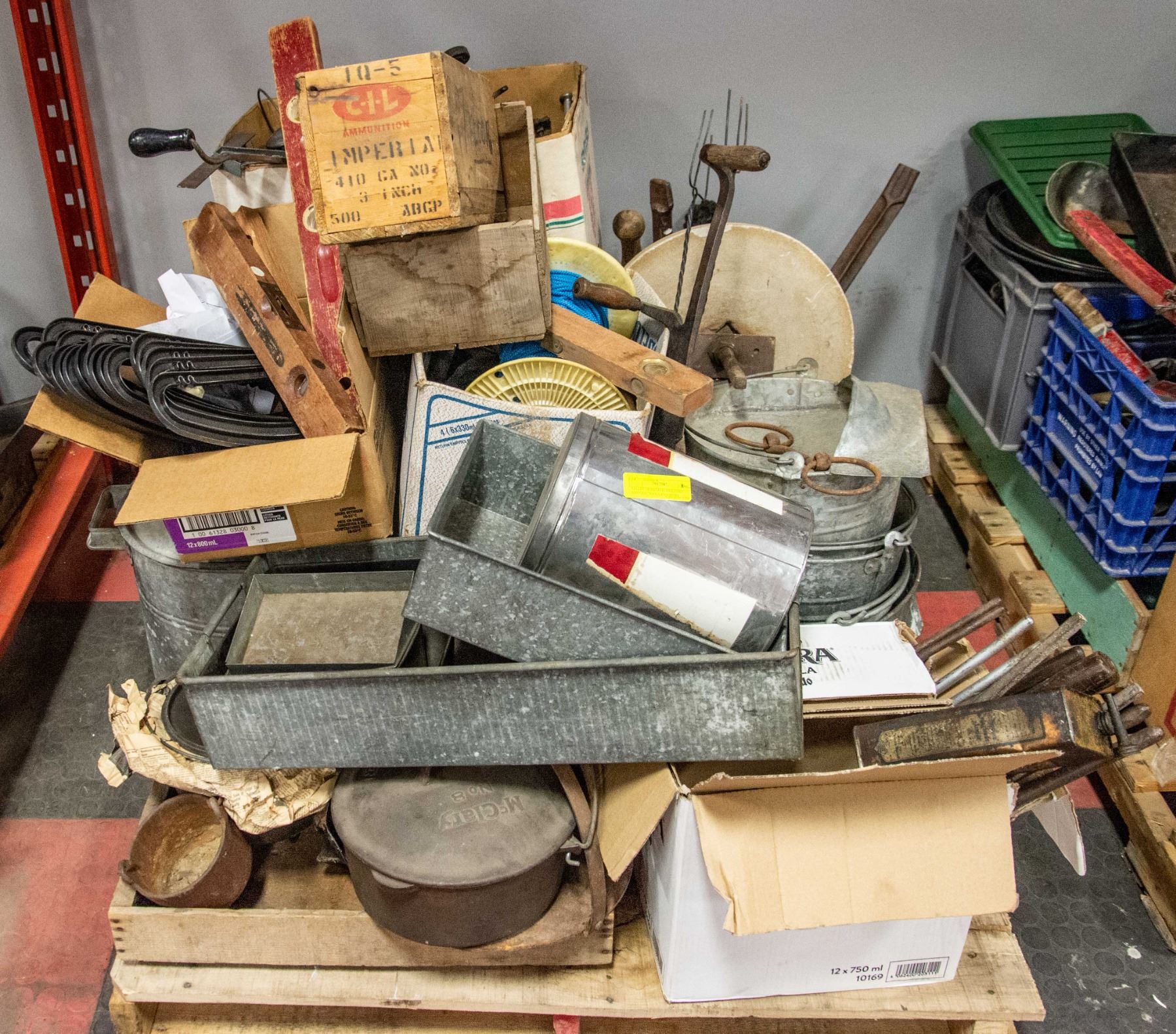 PALLET OF ESTATE: INCLUDES ANTIQUE TOOLS AND MORE