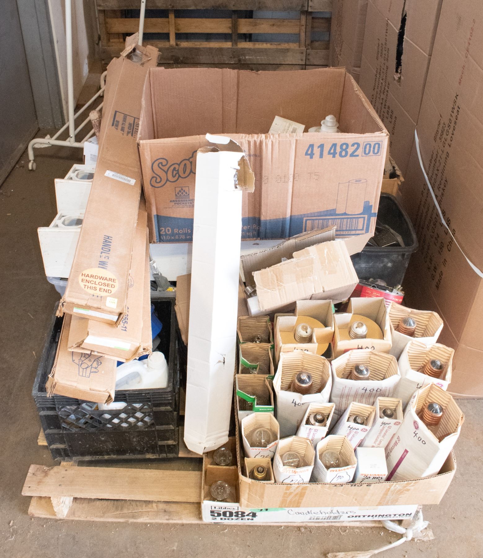 PALLET OF HARDWARE, LIGHTBULBS AND MORE
